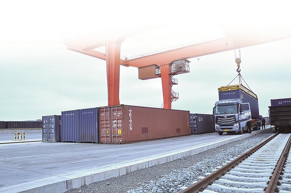 鹽城北站貨場組織吊裝農副產品準備上專列。 記者 黃海峰 攝