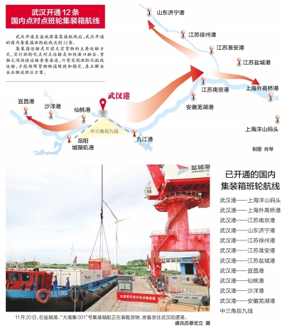 截至目前,武漢開通的國內集裝箱班輪航線達到12條。
