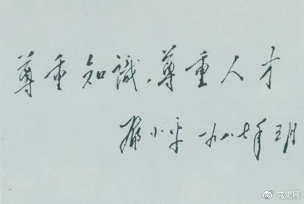 鄧小平1987年5月的題詞:尊重知識,尊重人才。