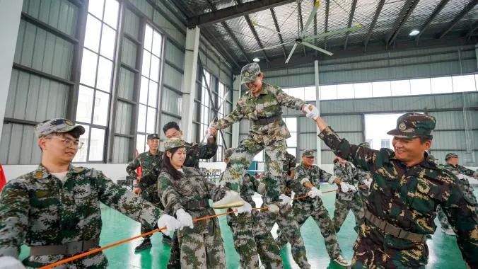 在訓練場上,烈日炎炎下,學員們身姿挺拔如松,汗水浸透衣衫卻依然保持昂揚斗志;戰術訓練中,他們匍匐前進、跨越障礙,在摸爬滾打中突破自我;團隊拓展項目里,“動力繩圈”“卡牌風云”“眾志成城”等環節,讓大家深刻體會到溝通協作、相互信任的重要性。“剛開始覺得很累,但看到身邊的伙伴都在堅持,我告訴自己絕不能掉隊。通過這次軍訓,我不僅收獲了體能上的提升,更學會了如何在團隊中發揮自己的力量。” 參訓學員感慨道。