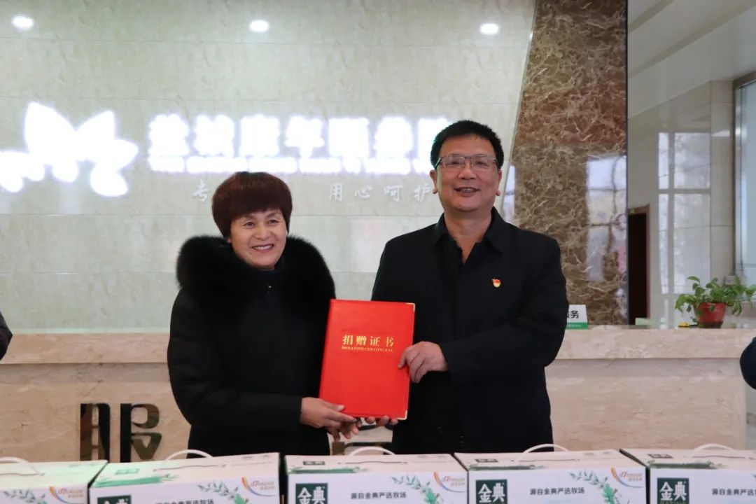 康年頤養(yǎng)院成立于2017年,是我市養(yǎng)老事業(yè)發(fā)展的重點單位,也是我市唯一一家省級“五星級養(yǎng)老單位”,其服務(wù)質(zhì)量等各方面均得到了各級領(lǐng)導(dǎo)的認可。目前該院已入住400多位老人,其中五保老人約100人。活動現(xiàn)場舉行了慰問物資捐贈儀式,徐桂榮代表康年頤養(yǎng)院向集團頒發(fā)捐贈證書。