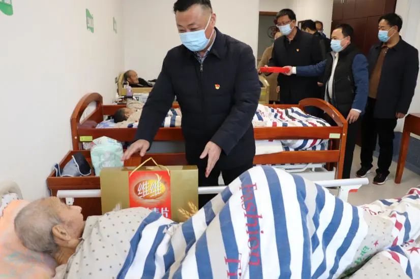 捐贈儀式結(jié)束后,周旭東一行還走進康養(yǎng)病房,親切地給入住的老人們送上新春的祝福。
