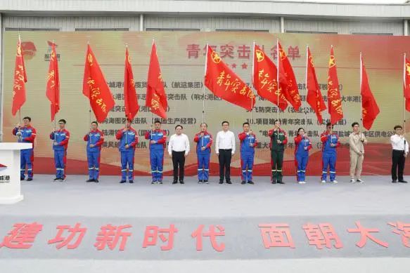 活動中,與會領(lǐng)導(dǎo)為12個圍繞服務(wù)重大項目而組成的青年集體突擊隊進行授旗,青年突擊隊、青年文明號代表作表態(tài)發(fā)言,并舉行了“強國復(fù)興有我 青春燃在海港”鹽城港青年宣誓儀式。