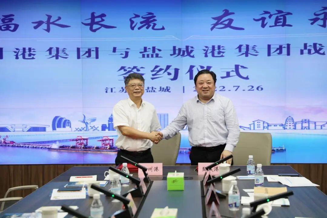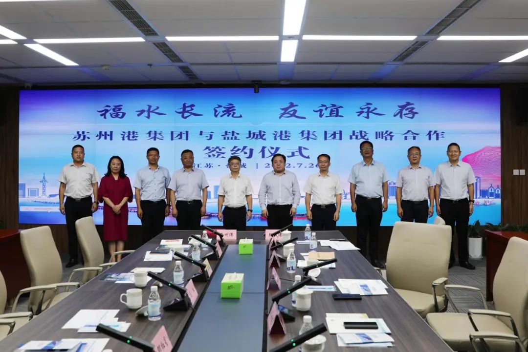 7月26日,蘇州港集團(tuán)與鹽城港集團(tuán)戰(zhàn)略合作簽約儀式成功舉行。蘇州港集團(tuán)黨委書記、董事長(zhǎng)吳紅,集團(tuán)黨委書記、董事長(zhǎng)、總經(jīng)理周正雄出席活動(dòng)并簽約。蘇州港集團(tuán)總經(jīng)理毛雪強(qiáng),集團(tuán)黨委委員、紀(jì)委書記周旭東,集團(tuán)黨委委員、副總經(jīng)理夏立新、陳正華等參加。