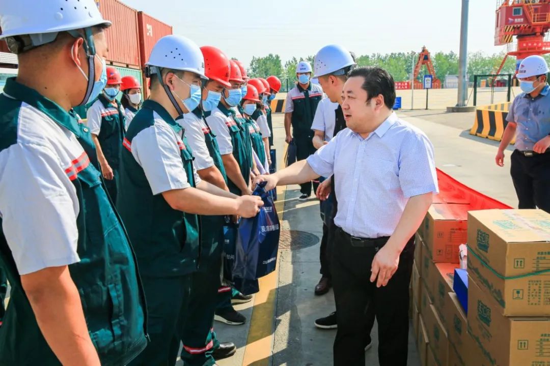 連日來,氣溫節節攀升、熱浪襲人。在亭湖港區,周正雄和堅守崗位的工作人員一一握手,感謝大家的默默奉獻,為保障港口安全平穩運行而付出的努力,并向他們送上慰問品。他說,港口作為交通運輸行業的重要組成部分,既是能源消耗和碳排放的重要來源,也是推動綠色發展、實現碳中和的關鍵領域。要堅持貫徹落實集團“十四五”關于綠色生態港建設的部署要求,以系統推進綠色生態港建設為重點,全面提升港口基礎設施、裝備和運輸組織的綠色發展水平,努力做到“低碳排放”乃至“零碳排放”,著力推動港口整體綠色轉型,全力推進“綠色、生態、智慧、平安、美麗”港口建設,助力鹽城港集團實現更加健康可持續發展。與此同時,要始終堅持“以人為本”,時刻把一線職工的健康安全放在首位,結合高溫天氣碼頭施工作業要求,抓嚴抓細防暑降溫各項工作,全力改善職工夏季生產生活條件和工作環境,及時對防暑降溫各類措施落實情況進行再監督再檢查,切實保障職工健康權益,確保防暑降溫各項工作有效落實到位。一線員工要進一步提高安全意識,積極配合做好防暑降溫工作,在全力保障健康安全的前提下,合理安排作息時間,繼續保持斗志昂揚的精神面貌,發揚不畏艱苦、勇于奉獻的精神,在高溫期間有序開展各項工作,努力在平凡的崗位上做出不平凡的成績,為集團高質量融合發展積蓄更多動能。