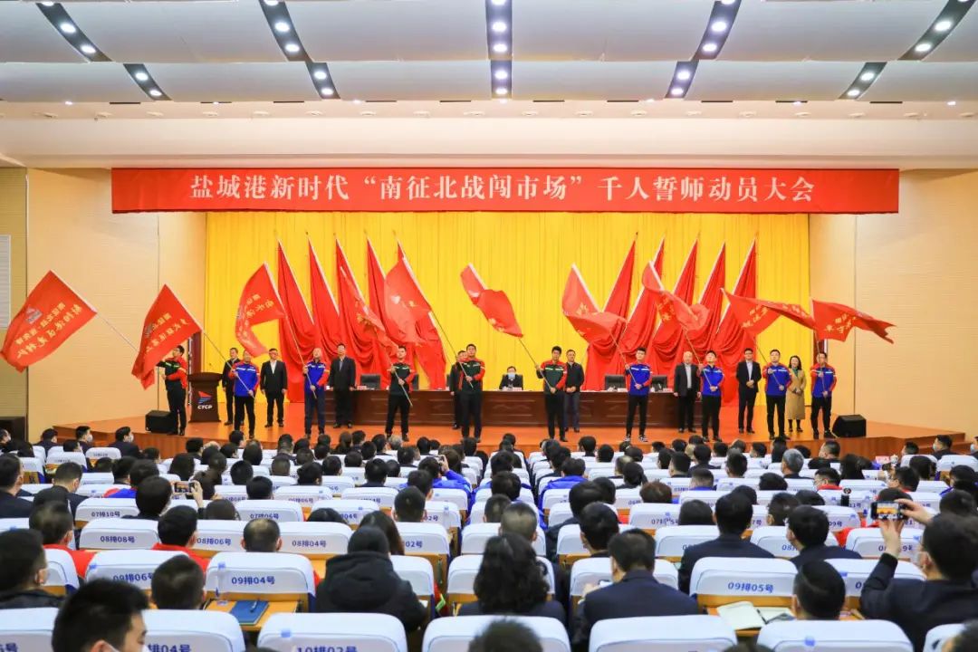 鹽城港新時代“南征北戰(zhàn)闖市場”百日攻堅千人誓師動員大會勝利舉行