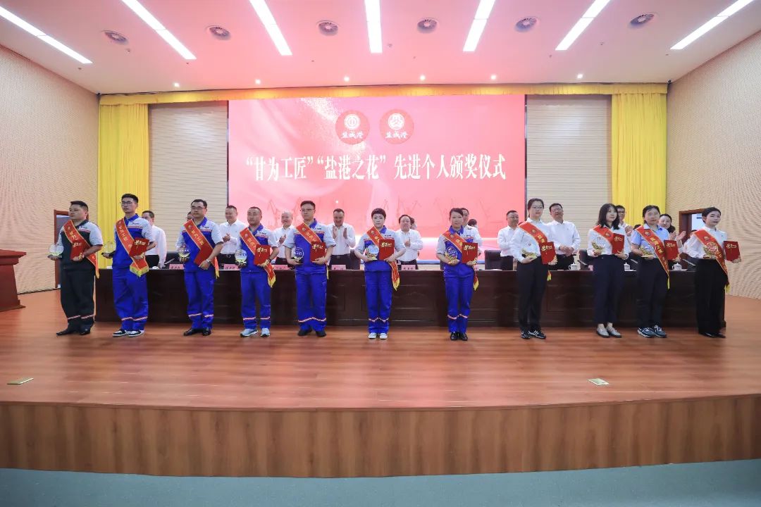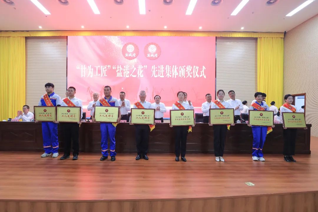 會議宣讀了《關于表彰2023年度“紅色之錨”“甘為工匠”“鹽港之花”“活力之帆”先進集體和先進個人的決定》,并為獲獎代表進行頒獎。5名獲獎代表作交流發言。