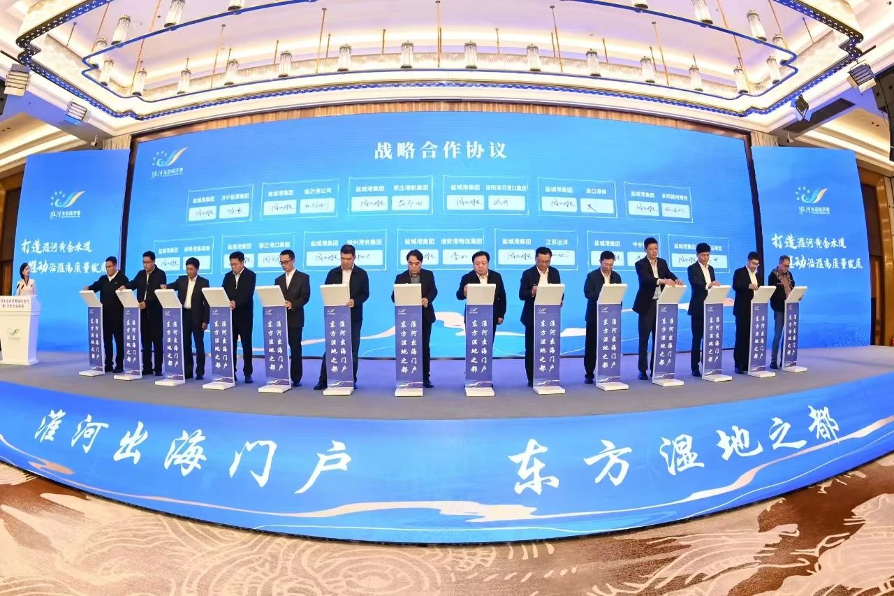 會議發布了《打造淮河黃金水道 推動沿淮高質量發展鹽城倡議》和《淮河流域港航協作發展規劃研究報告》。《倡議》提出,將全面推進《淮河生態經濟帶發展規劃》實施,深化淮河流域城市群共建淮河黃金水道、共促產業轉型升級、共謀綠色低碳發展、共繪美麗生態圖景,共同推動沿淮高質量發展。《報告》提出,將構建以鹽城港淮河生態經濟帶出海門戶港為核心,淮河、京杭運河兩大淮河流域主通道為主軸,形成承東啟西、南北互濟,多港口深度互聯合作的“一核、兩軸、四向、多點”的淮河流域港航發展總體空間格局。