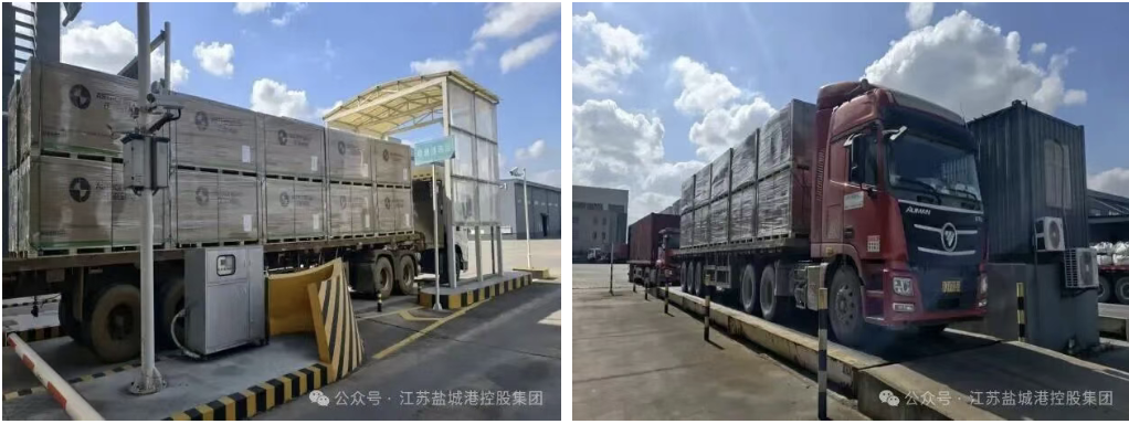 10月23日,鹽城港保稅物流中心卡口處機器轟鳴,數十輛滿載光伏組件的卡車依次駛入,經卡口系統核驗后完成通關流程,順利進入保稅物流中心存儲。此批貨物來自正泰光伏新能源企業,首批業務共計40TEU,貨值約560萬元,預計可為企業實現提前退稅約50萬元;后續將有數百TEU貨物通過“保稅倉儲+出口退稅”模式靈活調配至海外市場。