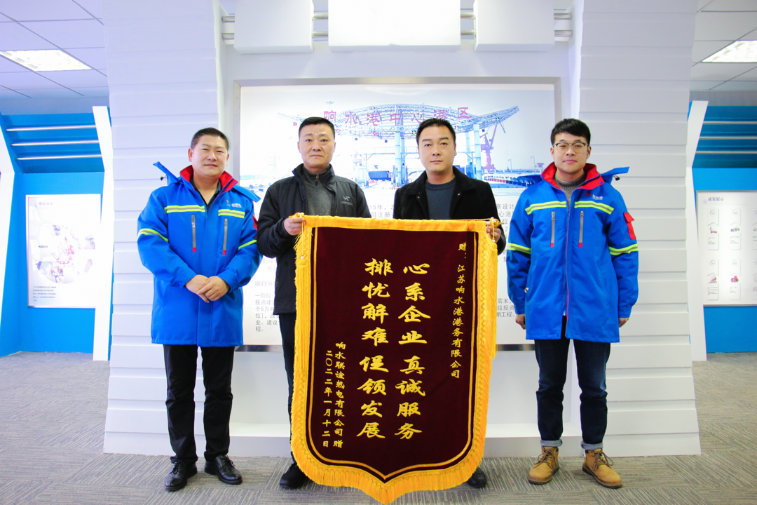 窗外寒風凜冽,室內暖意融融。近日,江蘇壘磊砼建材有限公司和響水聯誼熱電有限公司分別向響水港區贈送一面錦旗,錦旗上飽含真情的文字,猶如寒冬里的陽光,給冬日帶來別樣的溫暖。這兩面錦旗代表著客戶對響水港區多年來富有成效合作的感謝和褒獎。