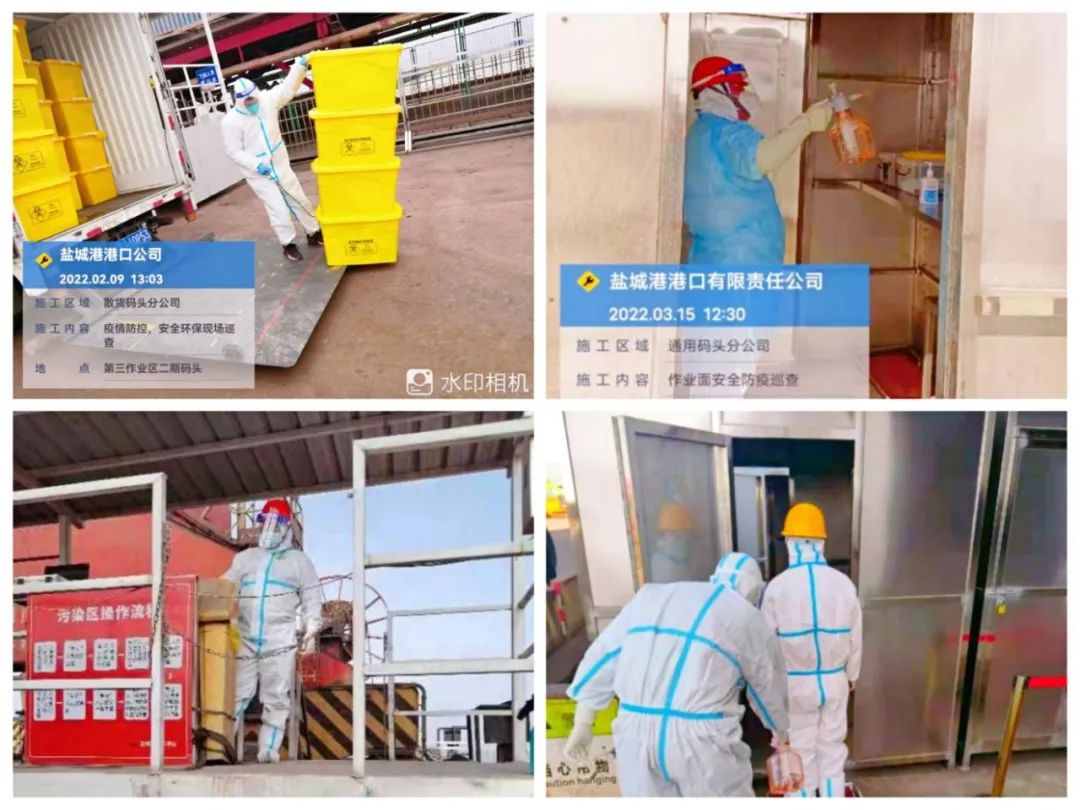 現(xiàn)場管理人員及作業(yè)人員全面實(shí)行二級防護(hù)標(biāo)準(zhǔn)。按照集團(tuán)要求,迅速組建專職巡查隊(duì)伍,24小時蹲點(diǎn)流動巡查碼頭現(xiàn)場。領(lǐng)導(dǎo)干部嚴(yán)格執(zhí)行24小時值班制度,嚴(yán)格落實(shí)重點(diǎn)人員和重點(diǎn)區(qū)域的各項(xiàng)防控措施,加大生產(chǎn)作業(yè)現(xiàn)場的檢查力度;專班人員作業(yè)時從嚴(yán)做好個人防護(hù),規(guī)范穿戴N95口罩、防疫手套、防護(hù)服等防護(hù)用具(五件套)。