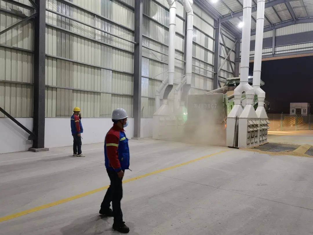 鹽城港港口公司糧儲公司投效使用的機械化平方倉在作業模式上進行大力改革,創新性使用雙梨式單托輥帶式輸送機,利用其高度集中化、自動化的功能優勢,實現糧食遠距離、不間斷、大批量輸送進倉,進一步提高了糧食進倉速度和卸糧質效,同時輸送線全程采用高效脈動除塵裝置及抑塵料斗,為節能增效、除塵環保提供有力保障,有效實現了綠色倉儲升級轉型。