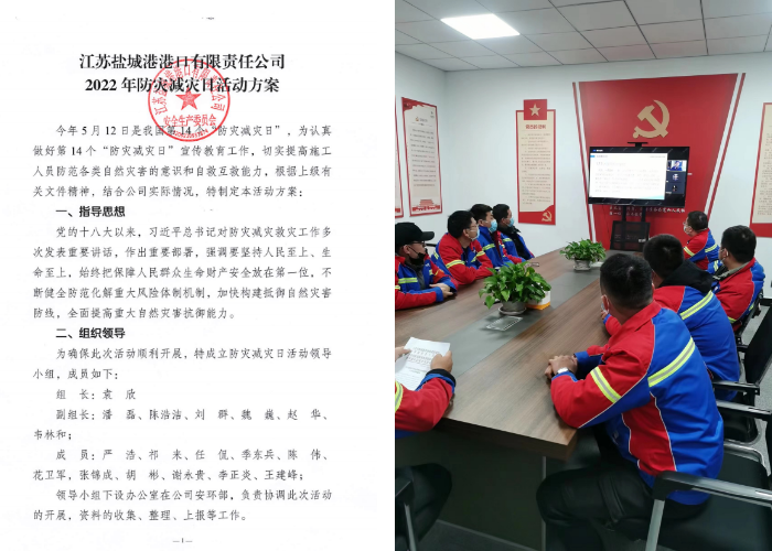 為做好全國第14個防災減災日活動,進一步增強公司全體員工防災減災意識和應急處置能力,鍛造一支聽之能用、用之能戰、戰之必勝的防災減災應急隊伍,保障公司安全生產形勢持續穩定向好,鹽城港港口公司嚴格執行集團統一部署,結合自身情況,以“強化軟件硬件,做好防災減災”為主線,在公司范圍內開展防災減災主題活動。