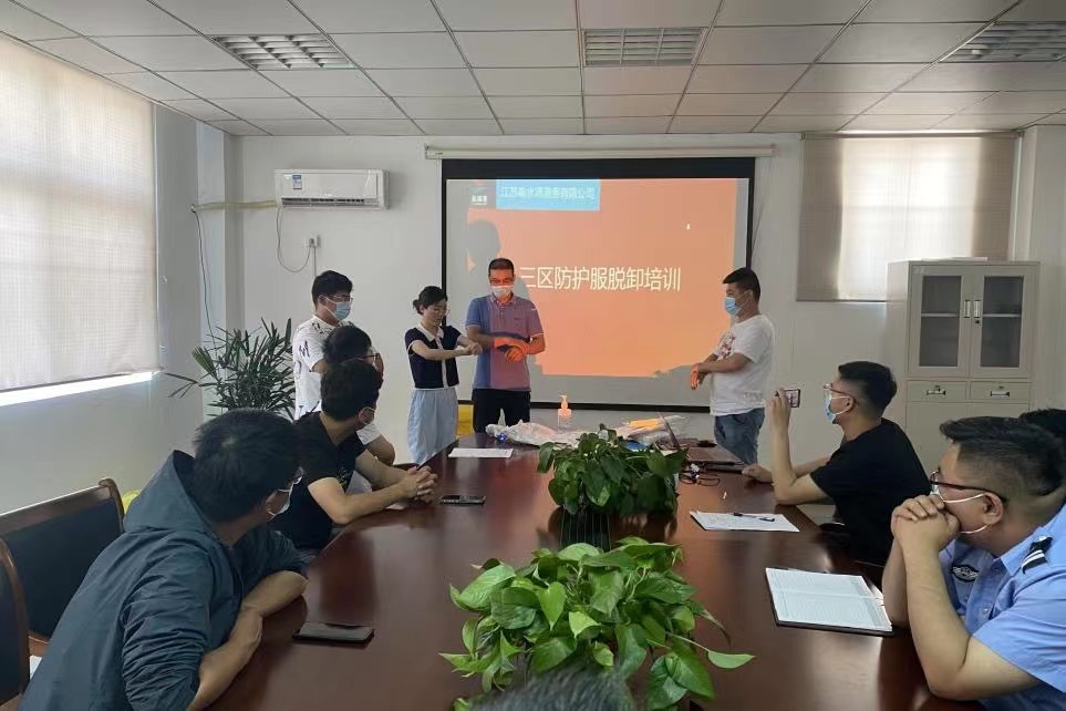 為堅決打好新型冠狀病毒疫情防控阻擊戰,全面提高應對疫情的響應能力,熟悉應急處置具體流程,從嚴抓好疫情防控工作,近日,響水港區港務公司特邀響水縣港城醫院專職醫護人員,對港區作業人員進行疫情防控相關的三區防護服穿脫消殺培訓。
