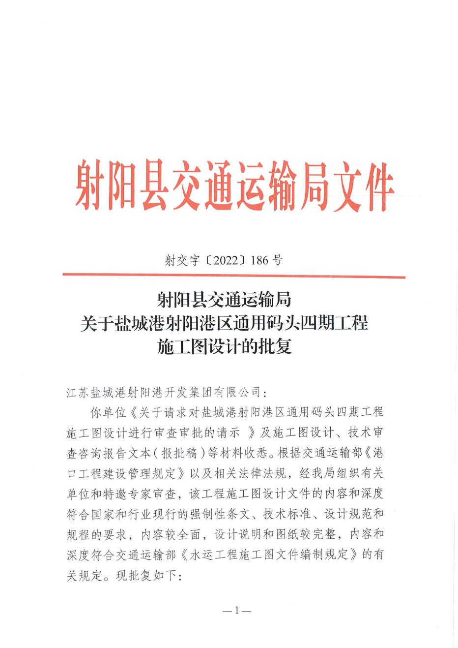 【項目大推進】鹽城港射陽港區通用碼頭四期工程初步設計和施工圖設計正式獲批