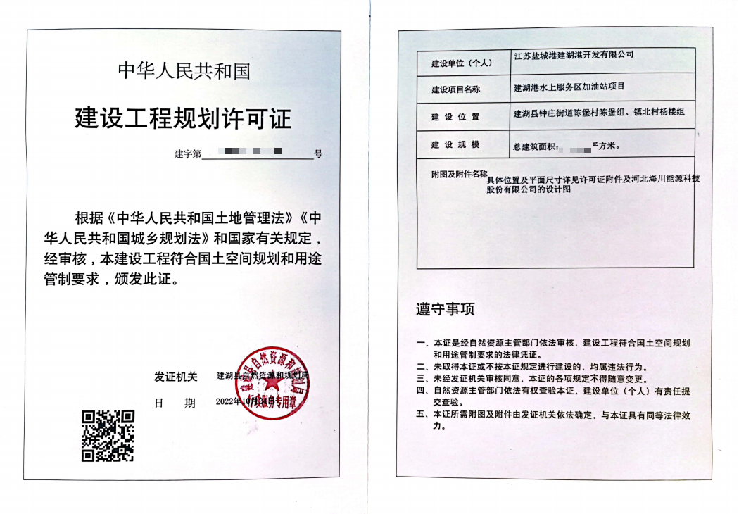 日前,陸港集團、水上服務區建設專班成功辦結建湖港水上服務區加油站工程項目的“建設工程規劃許可證”,全市首家水上加油加氣站規劃建設手續正式完成,為下一步提升港區水上服務能級打下堅實基礎。