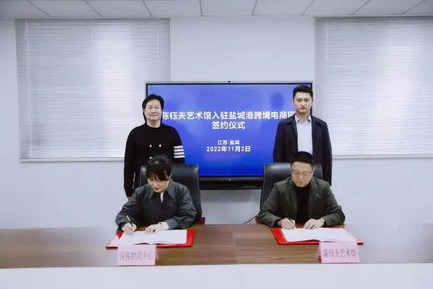 11月2日,陳鈺夫藝術(shù)館與江蘇鹽城港跨境電商有限公司合作簽約儀式成功舉行。跨境電商公司相關(guān)負(fù)責(zé)人參加活動(dòng)并簽約。