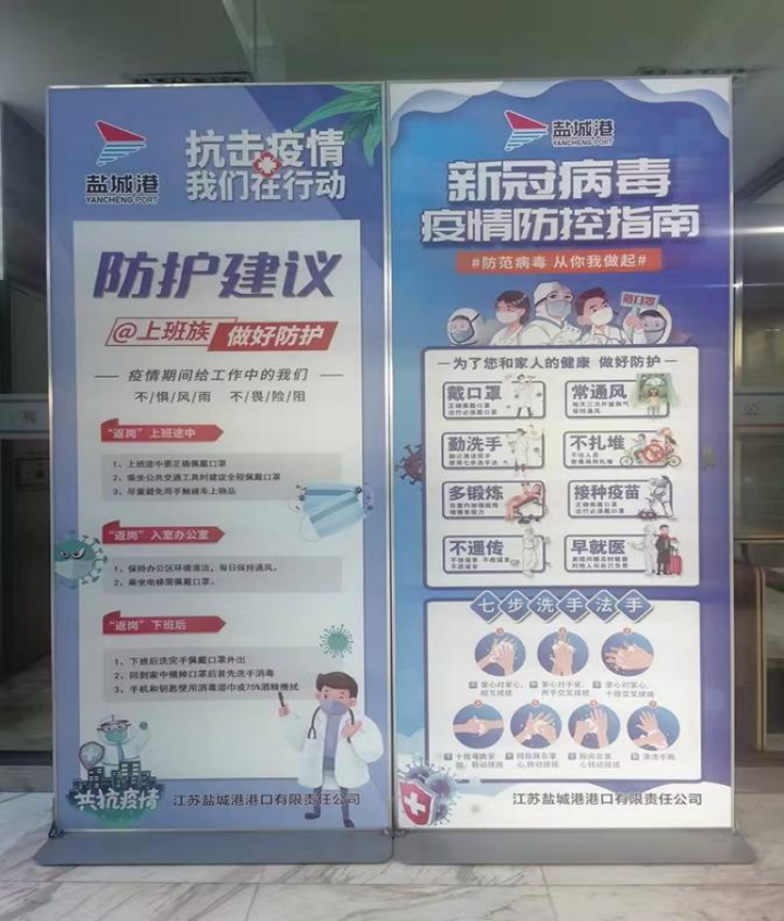 通過橫幅標語、防疫畫報、LED屏等載體,宣傳疫情防控知識,及時傳遞疫情動態和最新的健康管理措施,營造濃厚防疫氛圍。