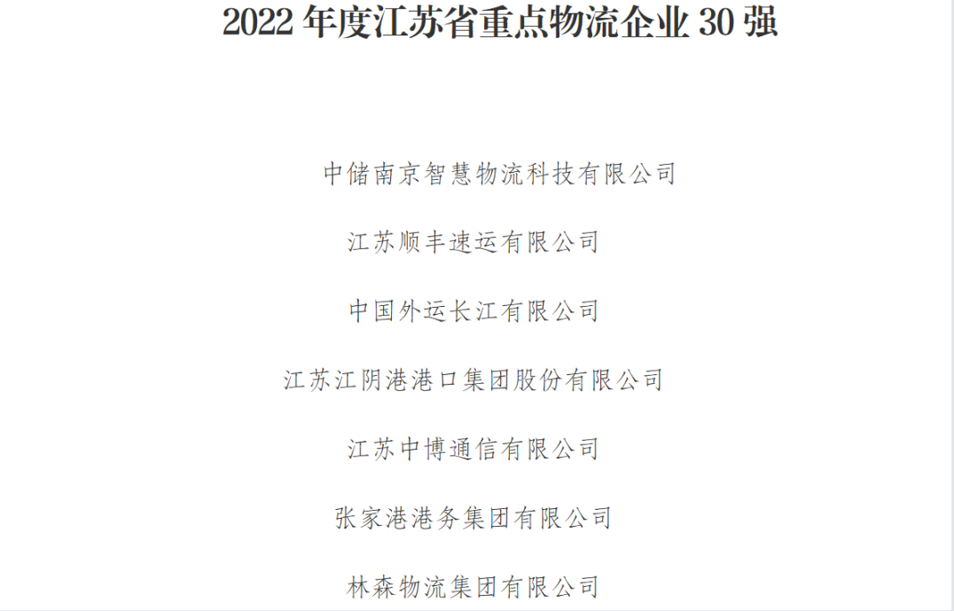 集團下屬單位和員工分別獲“2022年度江蘇省重點物流企業30強”“全省物流行業先進個人”榮譽表彰