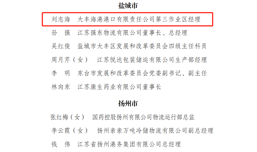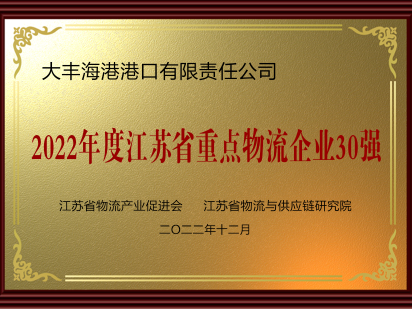 近日,省人力資源社會保障廳、省發展改革委、省物流產業促進會、省物流與供應鏈研究院在太倉市聯合舉辦“2022年度江蘇省重點物流企業30強”“全省物流行業先進集體和先進個人”“省級示范物流園區10強”等授牌儀式,鹽城港集團下屬單位大豐海港港口有限責任公司榮獲“2022年度江蘇省重點物流企業30強”榮譽表彰,港口公司第三作業區經理劉志海榮獲“全省物流行業先進個人”榮譽表彰。