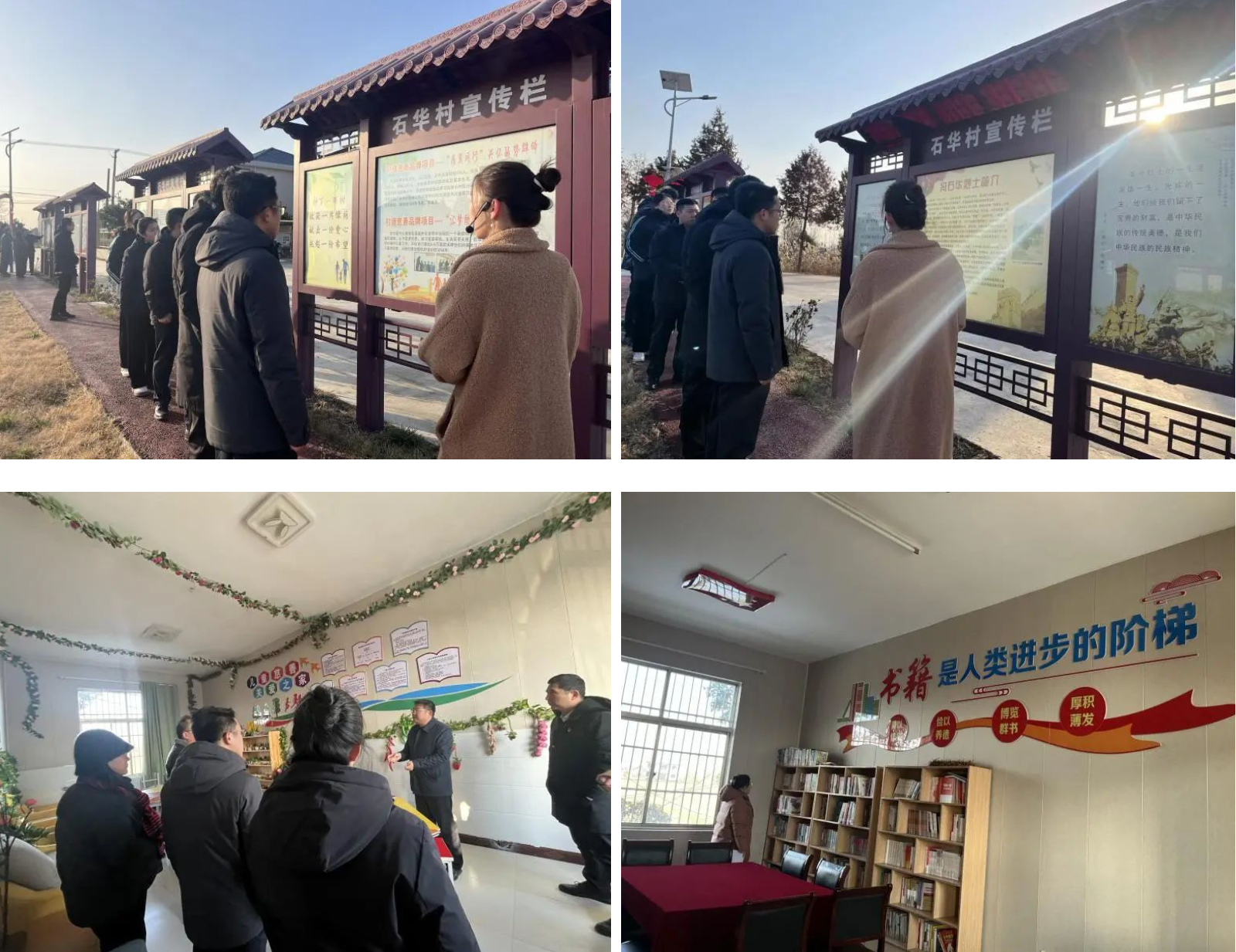 來到石華村,首先映入眼簾的是馮石華烈士持槍戰斗的雕像,仿佛把大家帶到那熱血雄心的年代。懷著對革命先烈的崇高敬意,黨員們先后參觀了村部的宣傳長廊、慈善長廊、讀書室、留守兒童心理驛站等地,詳細了解了馮石華烈士機智與敵斡旋,掩護同志成功轉移的革命歷史及石華村近年來的經濟發展情況、扶幼助老項目進展情況。在聆聽中,大家接受了一次特殊的心靈洗禮。