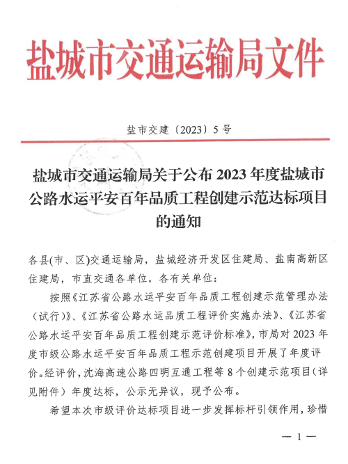 喜報(bào)!大豐港區(qū)通用碼頭3#泊位獲評(píng)鹽城市平安百年品質(zhì)工程創(chuàng)建示范達(dá)標(biāo)項(xiàng)目