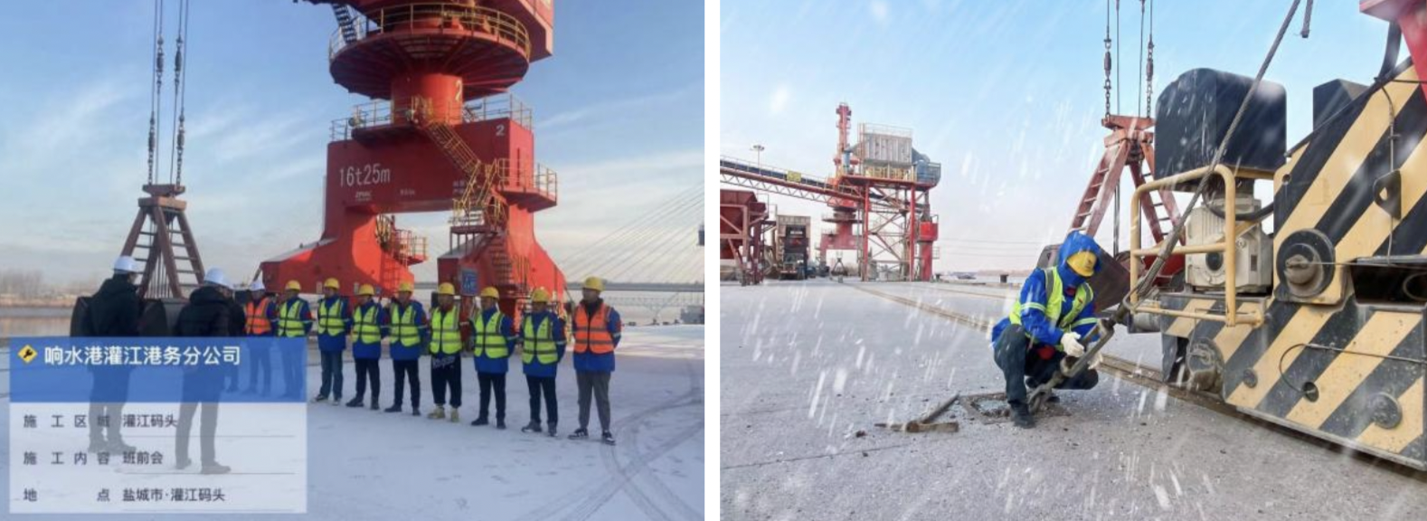 針對冬季運行保障特點,灌江港務分公司設備維修組全方位排查隱患,確保設備平穩可靠運行,對配電房、排水系統、門機防風拉索、鐵楔、錨固、流動設備等方面進行全面巡檢維保,做好冬季防雨、防風及防凍工作,為設備平穩運行筑牢安全基礎。