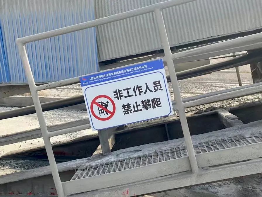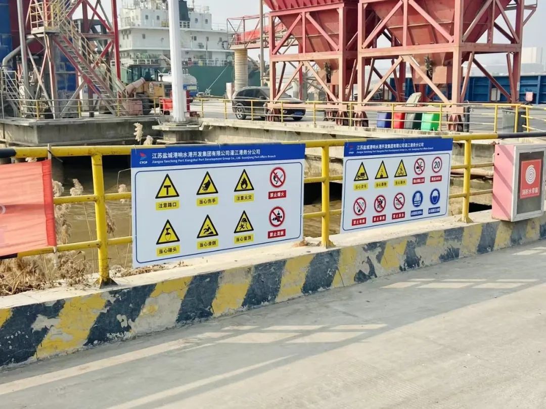 在港區(qū)門閘處設(shè)置“非作業(yè)車輛、工作人員禁止入內(nèi)”標識,提示社會人員、車輛不要誤闖誤入港區(qū)。在引橋欄桿上懸掛“注意路口,當心貨車”“禁止酒后上崗,必須戴安全帽”等標識,提醒工作人員注意自身安全,嚴肅上崗紀律;在碼頭后沿護欄上懸掛“禁止翻越”“水深危險,禁止靠近”,警示工作人員不要翻越碼頭護欄,遠離危險水域。本次完善新增警示標識牌共十余塊。