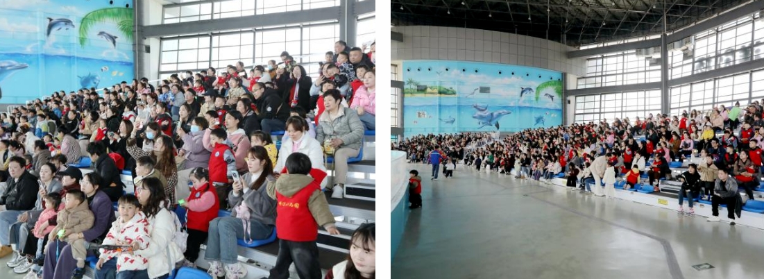 在港泊半島酒店用餐完畢后便啟程來到海洋世界景區。在海洋世界景區,海豚們用跳躍、遨游等方式歡迎客人們的到來。伴隨著飼養員的指令,海豚們與馴養師親密互動、默契共舞,唯美動聽的天籟之音無不展示著這群水中精靈的天賦,讓家長和孩子們流連忘返。