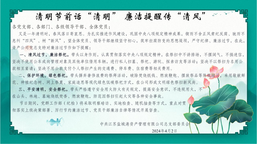 守廉“關(guān)”過廉“節(jié)”,為全體干部職工推送廉潔提醒、發(fā)放廉潔家書,組織簽訂廉潔過節(jié)承諾書,以廉潔家風(fēng)涵養(yǎng)清風(fēng)正氣,引導(dǎo)全體職工廉潔、文明過節(jié)。