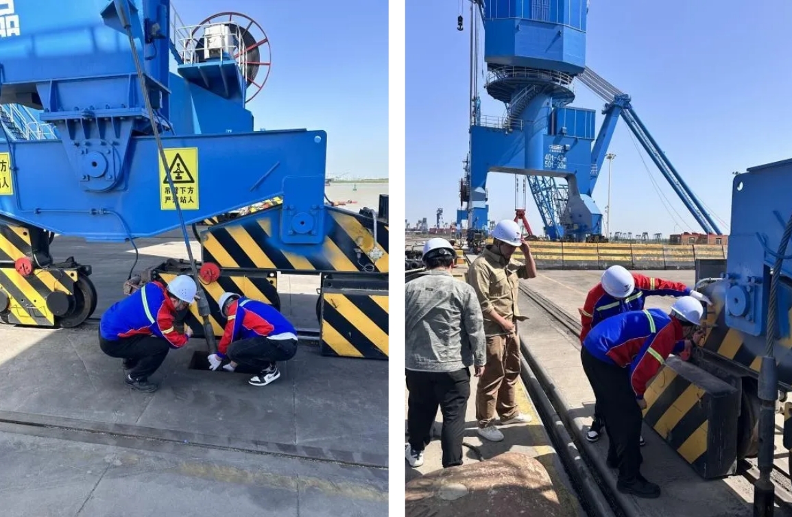 強化預防性維護。組織隊伍對港區設施設備,尤其是門機、桅桿吊等大型機械進行全面排查,細致檢查了防風索、錨定、夾軌器及防滑靴等關鍵部件,確保設備正常運轉。在臺風天氣前,加大檢查、檢修力度,采取防風加固措施,提高設備抗風險和抗災能力。