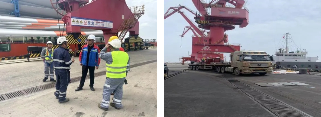 作業(yè)過程中,射陽港區(qū)選派經(jīng)驗豐富、素質(zhì)過硬的門機司機進行卸船作業(yè),根據(jù)貨輪進港前期雙方制定的裝貨方案與綁扎方案,全力攻堅推進裝卸作業(yè)圓滿完成。“加快速度!確保安全!我們盡量在30個小時內(nèi)完成這批貨物的裝卸!”他的聲音再次響起,不斷激勵著碼頭全體作業(yè)人員。