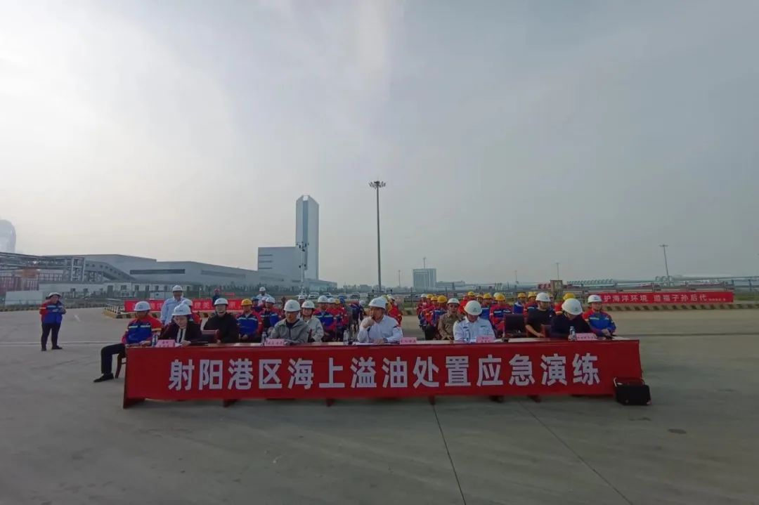 以上情景并非真實發(fā)生的事故,而是射陽港區(qū)聯(lián)動射陽海事處、中鐵廣州局項目部、國能新能源模擬海上突發(fā)溢油應急處置演練中的場景。