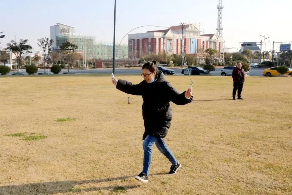 碧璽晴空下,首先進(jìn)行的是“激流勇進(jìn)”趣味跳繩跑。賽場上,選手揮動(dòng)著跳繩,快速奔跑,一心想為團(tuán)隊(duì)獲得好名次。隊(duì)友站在各自的“崗位”為比賽的選手歡呼助力。