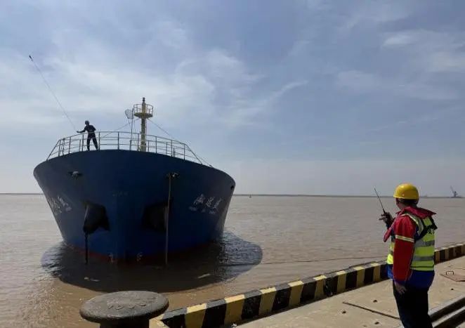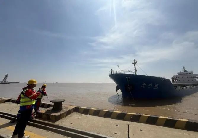 在射陽(yáng)港區(qū)碼頭前沿,穿戴整齊調(diào)度員正和船長(zhǎng)、碼頭操作人員通過(guò)對(duì)講機(jī)保持密切溝通,根據(jù)實(shí)際情況發(fā)出靠泊指令,指揮船舶控制航速、調(diào)整船位,確保船舶平行、緩慢地靠近泊位。同時(shí)提醒碼頭操作人員準(zhǔn)備好纜繩、護(hù)舷等設(shè)備,完成系纜固定船舶工作。滿分穿搭為調(diào)度員的日常工作保駕護(hù)航,精準(zhǔn)調(diào)度為下一步的裝卸作業(yè)提供了堅(jiān)實(shí)的保障和高效的指引。