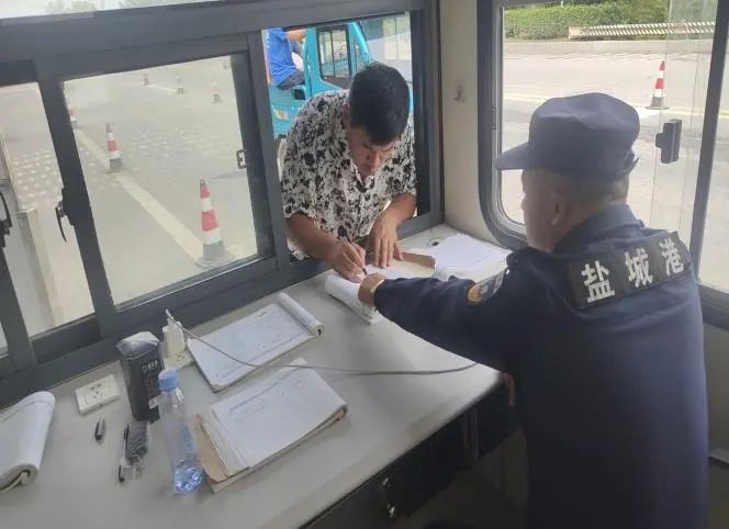“你好,請(qǐng)將車停一下,登記進(jìn)港。”門崗保安員身子挺拔,手持醒目的紅色停車示意牌,維持港區(qū)入口處的進(jìn)出安全。他們目光堅(jiān)定,迅速核對(duì)駕駛員出示的證件與進(jìn)港通行證,指尖在登記簿上飛速記錄車牌、姓名、事由等信息,同時(shí)與職能部門實(shí)時(shí)核驗(yàn)身份。他們說(shuō),只要穿著保安服,我們就必須用嚴(yán)謹(jǐn)細(xì)致的工作狀態(tài),守牢港口的第一道安全防線。