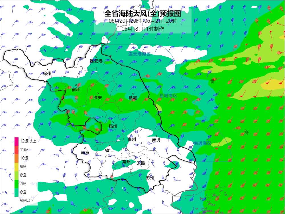 6月19日20時-20日20時、20日20時-21日20時全市最大風力預報圖