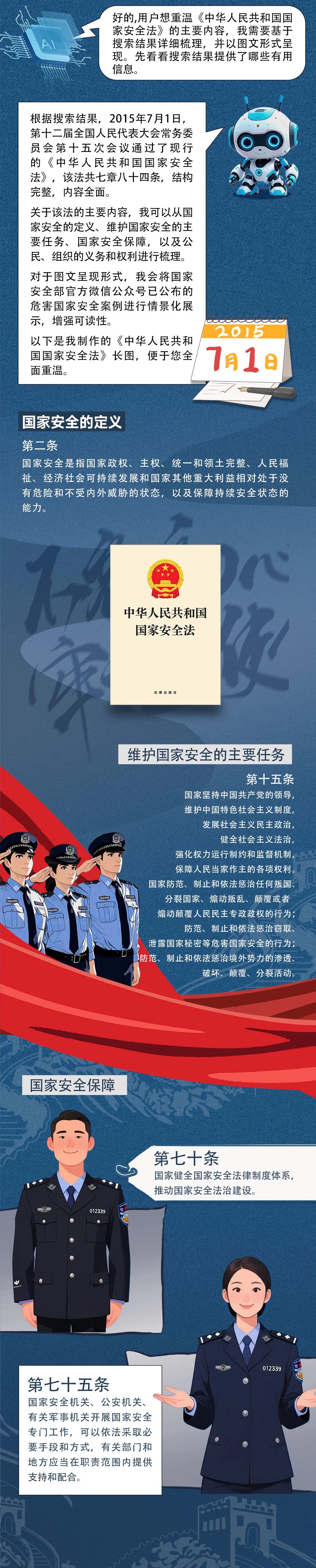 今年是《中華人民共和國國家安全法》頒布實施10周年。十年來,該法有力保障了總體國家安全觀貫徹落實,有力促進了國家安全體系和能力現代化。下面,讓我們一同回顧該法主要內容,共同增強國家安全意識,凝聚起全社會維護國家安全的強大合力。