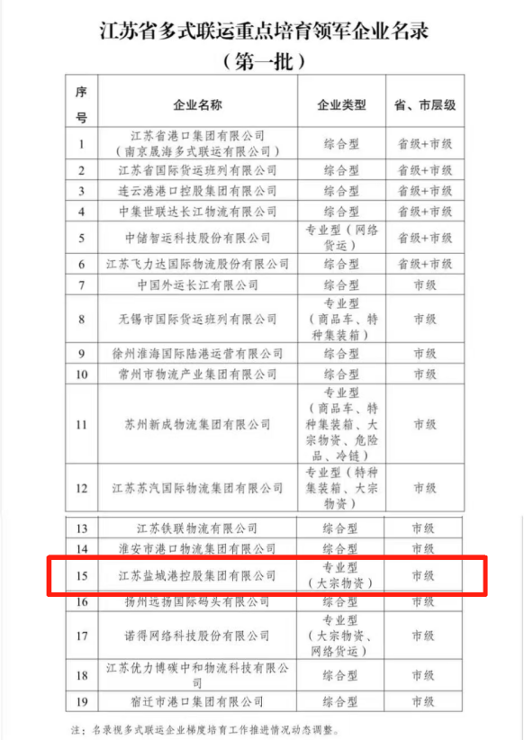 近日,江蘇省交通運輸廳出臺《江蘇省推動多式聯(lián)運企業(yè)梯度培育工作方案》,并公布第一批19家重點培育企業(yè)名錄。鹽城港集團憑借在多式聯(lián)運領域的突出成績和顯著發(fā)展?jié)摿?,成功入選“江蘇省多式聯(lián)運重點培育領軍企業(yè)名錄(專業(yè)型)”。