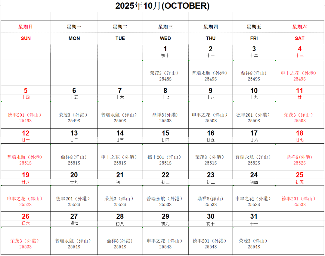 “滬鹽專線”10月船期表已經新鮮出爐!