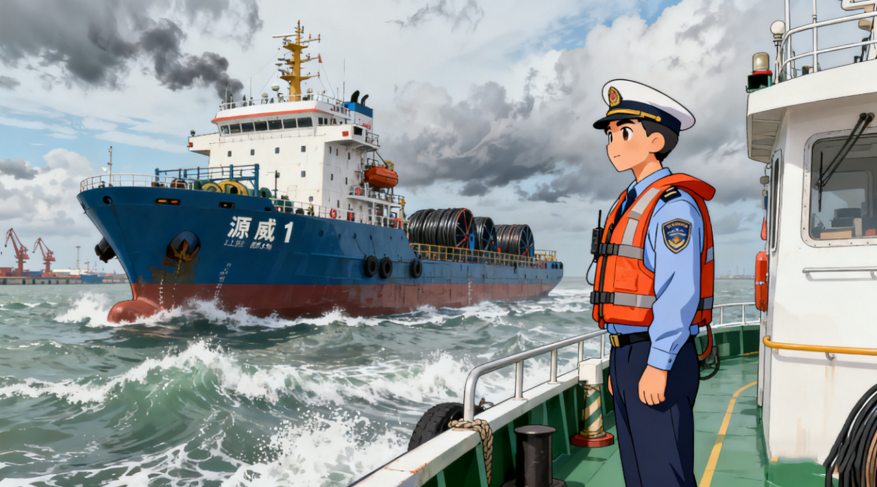 作業過程中引航員手持對講機精準發令,拖輪協同配合穩控船身;調度室里,實時數據跳動間,靠離泊時間被科學壓縮。這高效的配合,為海纜吊裝、規范綁扎擠出了寶貴時間,讓每一批海纜都能按時登船,也讓全年引航任務實現“零差錯”。