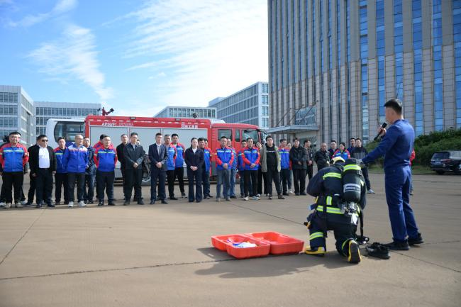 單打獨(dú)斗難成氣候,聯(lián)動(dòng)共建凝聚安全合力。鹽港物業(yè)公司通過與跨境電商園、保安公司等多單位實(shí)戰(zhàn)協(xié)作,不僅檢驗(yàn)了各場(chǎng)景應(yīng)急預(yù)案的科學(xué)性與可操作性,更磨合了協(xié)同響應(yīng)機(jī)制,打破單位間溝通壁壘,大幅提升突發(fā)事故聯(lián)合處置效率。港灣開發(fā)建設(shè)集團(tuán)深化消企聯(lián)建,組織員工走進(jìn)消防站,詳細(xì)了解液壓破拆工具組、防護(hù)裝備、消防車隨車器材等救援設(shè)備的功能與使用,正式成立消防應(yīng)急救援隊(duì)并舉行授旗儀式,打造出一支消防救援“尖刀隊(duì)伍”。