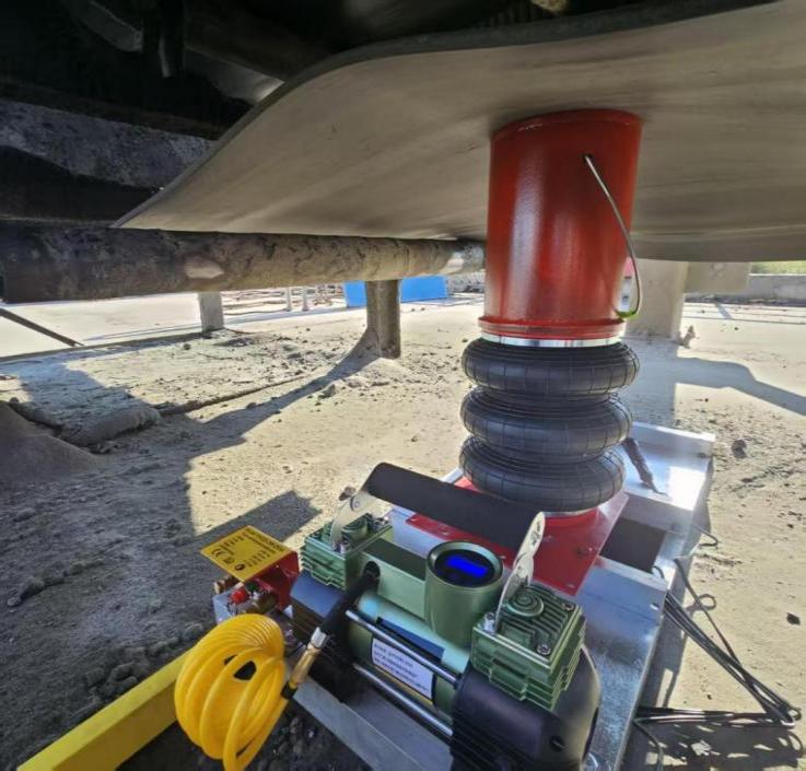 傳統皮帶機托輥更換作業長期面臨耗時長、勞動強度大、安全風險高等突出難題,直接影響港口生產效率與設備維護成本。為解決這一難題,邱中冬帶領團隊立足現場實際,成功研發出三托輥皮帶機輕量化氣囊頂升換輥系統。該系統采用航空鋁合金框架與高精度氣囊頂升技術,結構輕巧、舉升平穩,并配備紅外防傾倒傳感器,徹底改變了傳統換輥作業模式。改造后,僅需一人即可安全、便捷地完成拆裝作業,單組托輥更換時間由原先大幅縮短至僅0.5小時,每年可為每公里皮帶機節約設備停機成本超過1.5萬元,實現了換輥作業的安全化、輕便化與高效化,為港口設備維護提供了極具推廣價值的創新解決方案。