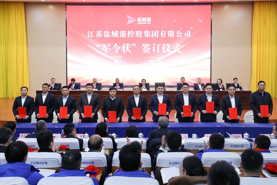 會議宣讀了關于表彰2024年度先進集體及個人的決定,并為獲獎代表進行頒獎;科技集團、大豐港集團、響水港集團等5家單位作表態發言。資本運營公司、大豐港集團、航運集團和集團投融資部等10單位和部門現場簽訂生產經營軍令狀。