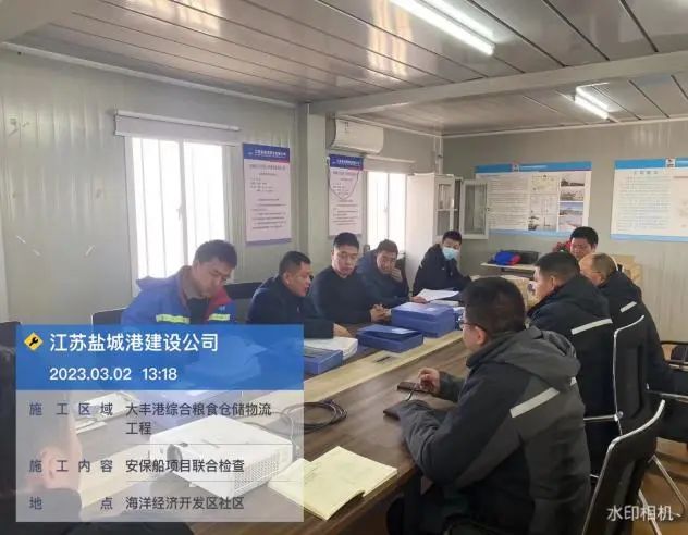 為深入貫徹黨的二十大精神,全面落實集團黨委一屆三次全體(擴大)會議各項工作部署,進一步強化公司安全生產(chǎn)主體責(zé)任,及時消除各類安全隱患,保障公司工程項目健康有序建設(shè),實業(yè)集團建設(shè)公司與智慧港口公司、項目管理公司及實業(yè)集團安全環(huán)保部組成聯(lián)合檢查組,以打造“平安工地”為立足點,對鹽城港大豐港區(qū)工作船安保設(shè)施工程開展聯(lián)合檢查治隱患行動。