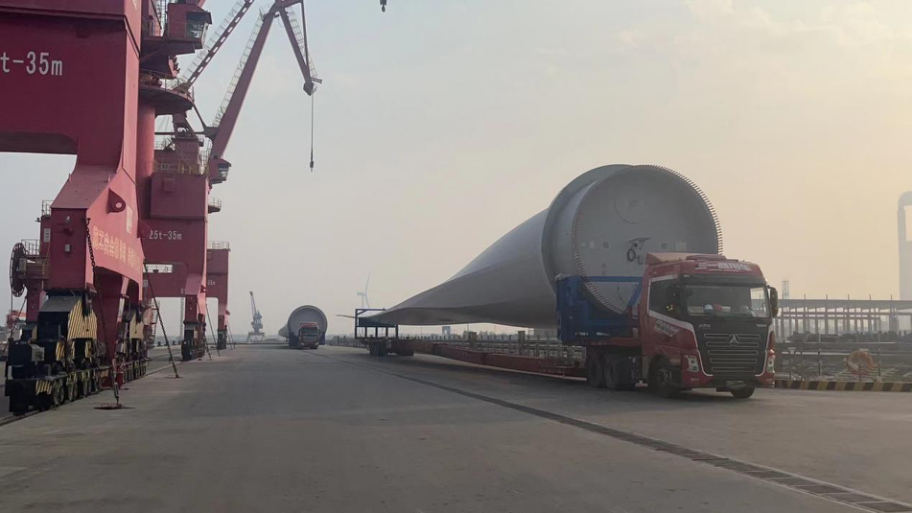 這批風(fēng)電葉片長(zhǎng)107米,是射陽(yáng)港目前已接卸的最長(zhǎng)風(fēng)電葉片。超長(zhǎng)的葉片帶來了一系列新課題,具體體現(xiàn)在道路運(yùn)輸、港區(qū)內(nèi)陸運(yùn)、碼頭裝卸作業(yè)等方面。射陽(yáng)港區(qū)生產(chǎn)經(jīng)營(yíng)團(tuán)隊(duì)迎難而上,主動(dòng)與當(dāng)?shù)卣块T對(duì)接,及時(shí)解決道路運(yùn)輸障礙問題,拆除改造港區(qū)紅門、堆場(chǎng)圍欄等設(shè)施,滿足港區(qū)內(nèi)部轉(zhuǎn)運(yùn)需求;抽調(diào)精干力量組成服務(wù)專班,為客戶提供全程定制化服務(wù);組建裝卸作業(yè)專班,借鑒優(yōu)化百米風(fēng)葉裝卸經(jīng)驗(yàn),制定詳細(xì)作業(yè)方案,從葉片集港、船舶靠泊、場(chǎng)地安排和吊裝作業(yè)等方面做足準(zhǔn)備,安全高效完成首船裝卸作業(yè)工作,打響了“風(fēng)電裝卸服務(wù)”射陽(yáng)港區(qū)優(yōu)質(zhì)品牌。