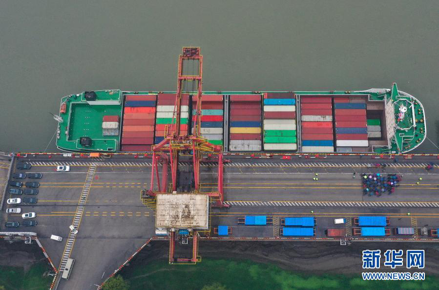 2月28日,停靠在碼頭的“漢海5號”準備首航駛往上海洋山港(無人機照片)。新華社發(fā)(趙軍 攝)