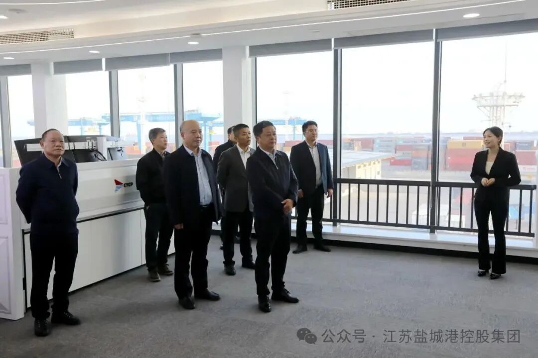 調研中,胡勇一行首先抵達鹽城港保稅物流中心。在現(xiàn)場,考察團認真聽取了相關負責人關于保稅物流中心功能定位、運營模式、發(fā)展現(xiàn)狀及未來規(guī)劃的介紹,詳細了解了其在服務地方外貿、降低企業(yè)物流成本、促進產業(yè)集聚等方面發(fā)揮的重要作用。隨后,考察團前往大豐港集裝箱碼頭,大豐港開發(fā)集團相關負責人向考察團匯報了碼頭泊位能力、航線布局、吞吐量以及未來建設規(guī)劃等情況,雙方就提升港口能級、優(yōu)化口岸營商環(huán)境等話題進行了現(xiàn)場交流。在自動化集裝箱堆場,技術人員現(xiàn)場演示了智能化操作流程,講解了智能化改造對提升作業(yè)效率、保障生產安全、降低運營成本的顯著成效,展現(xiàn)了鹽城港在智慧港口建設方面取得的進展。