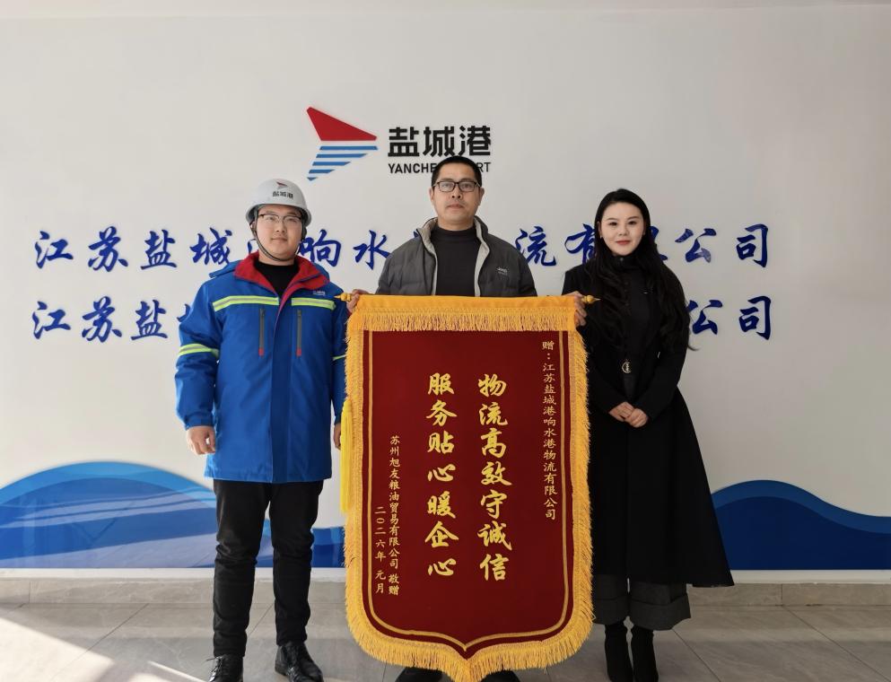 近日,響水港區(qū)收到一面來自蘇州旭友糧食貿易有限公司,印有“物流高效守誠信,服務貼心暖企心”的錦旗,不僅見證了兩家企業(yè)攜手共贏的深厚情誼,更是對港區(qū)優(yōu)質、高效、貼心服務的充分肯定。